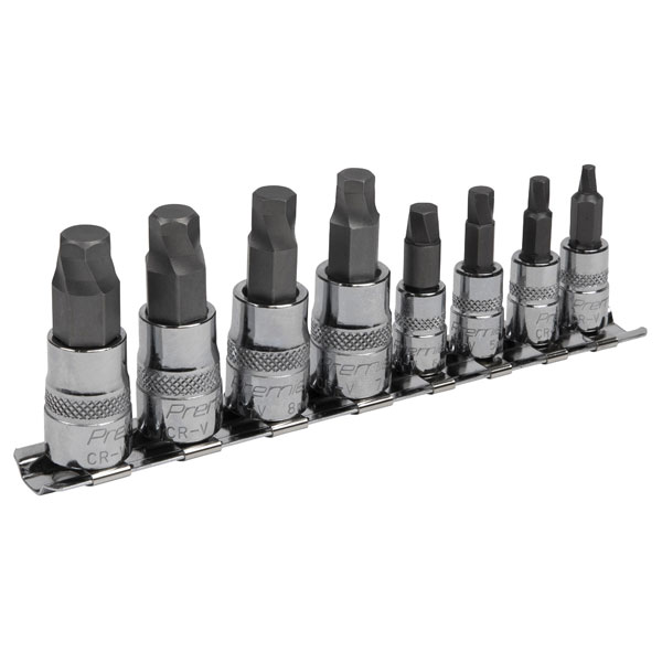 Sealey AK65600 Hex Socket Bit Set Lock-On™ 8pc 1/4" & 3/8"Sq Drive Metric