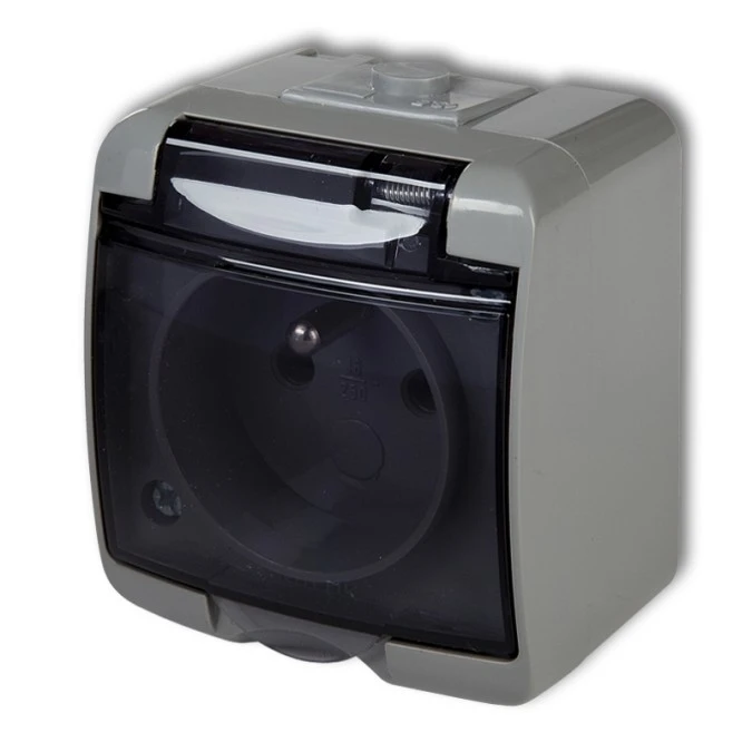 JUNIOR Gniazdo pojedyncze z/u (klapka dymna) popielaty IP54 10GHE-1d