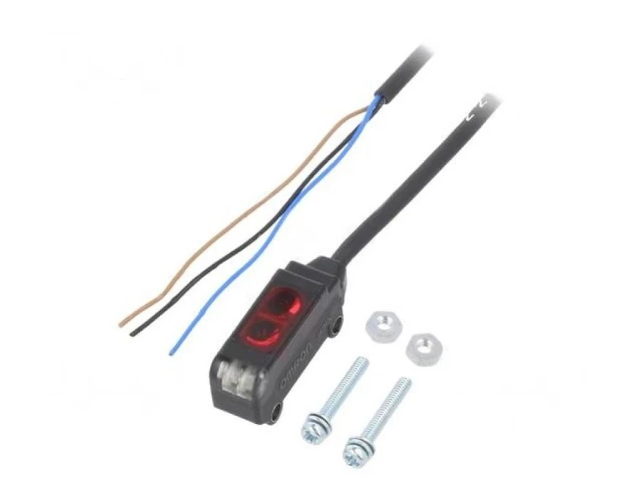 10. E3T-FT14 2M czujnik nadajnik -odbiornik (kpl.), PNP NC, zasięg 500mm, przewód 2m, płaska obudowa, tworzywo, światło czerwone, OM 762.91
