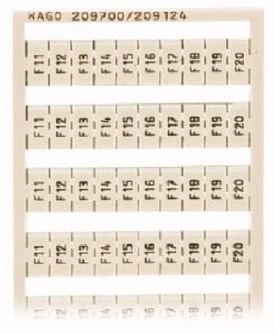 WAGO 209-700/209-124 WSB Quick Marker Vert. (F11-F20) 10ea for 281-5XX White