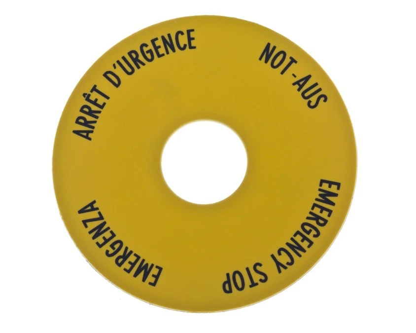 15. Tabliczka opisowa żółta okrągła fi60 EMERGENCY STOP (4 języki) SRT1 058873 10.63
