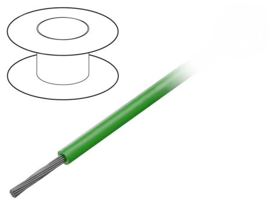 A 28AWG hook-up wire with green PTFE insulation ...
