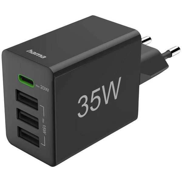 12. Hama 201990 USB charger 1x USB-C PD 3x USB-A 35W Mini Black 127.44