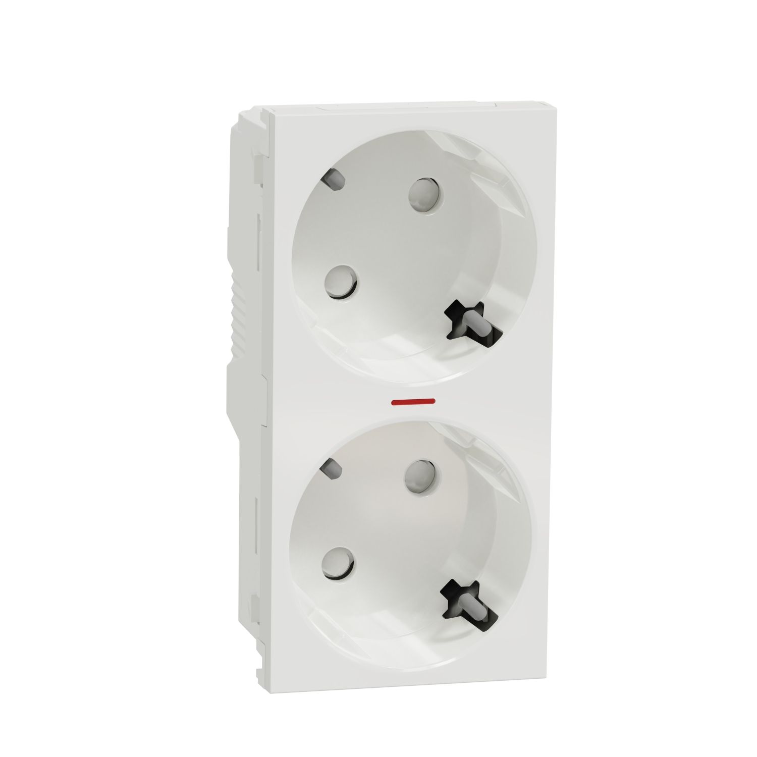 Nowa Unica, Gniazdo 2x2P+PE 45s z przesłonami i wskaźnikiem świetlnym, zaciski bezgwintowe, białe