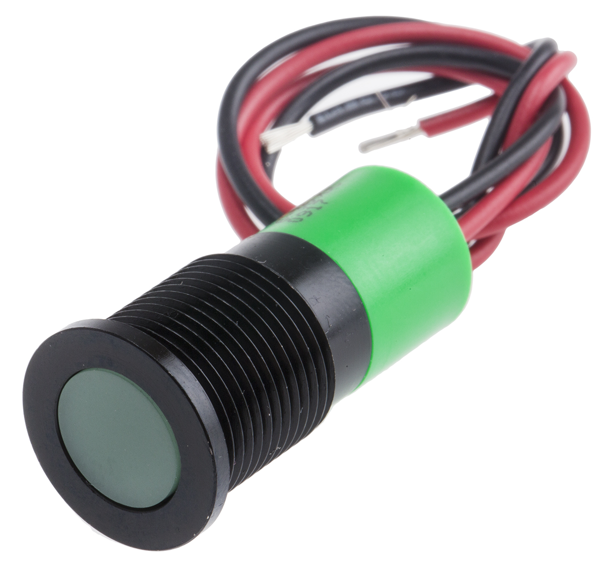 Lampka kontrolna do montażu panelowego 12 → 28V, zielona 12.7mm LED Czarny Końcówka lutownicza Marl