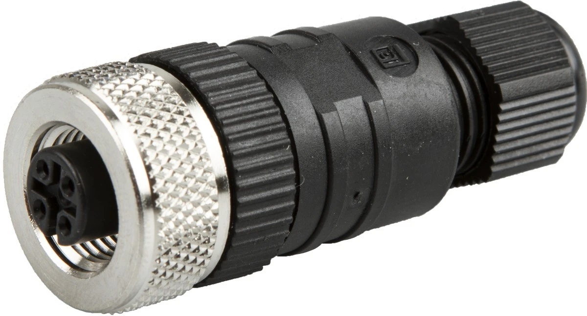 Złącze do samokonfekcjonowania M8 żeńskie 4-pinowe kątowe M12 męskie 4-pinowe proste 4x0,34mm² PUR 60V IP67 VK030F81