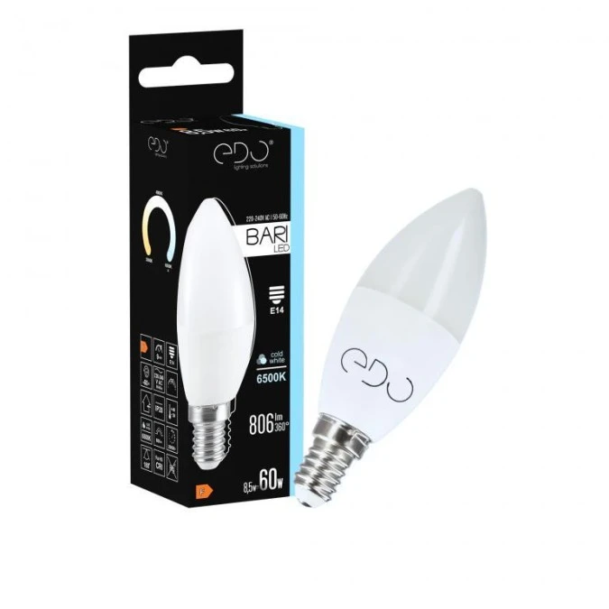 14. Żarówka BARI LED 8,5W CW świeczka, E14, 6500K, 806lm, 220-240V EDO777667 EDO 4.88