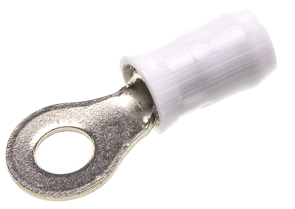 6. Zacisk oczkowy rozmiar przewodu 2.15mm² Ø , M4 izolowany średnica wew 4mm Biały TE Connectivity 28934.43