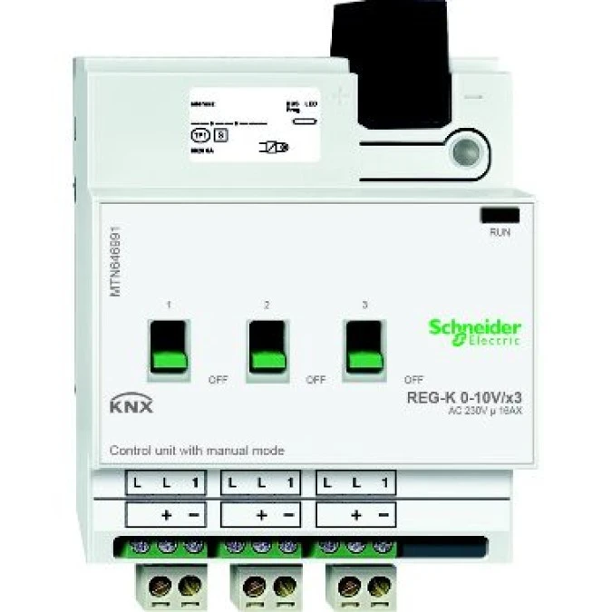 15. Sterownik 0–10 V KNX REG-K potrójny z uruchamianiem ręcznym, jasnoszary MTN646991 2611.29