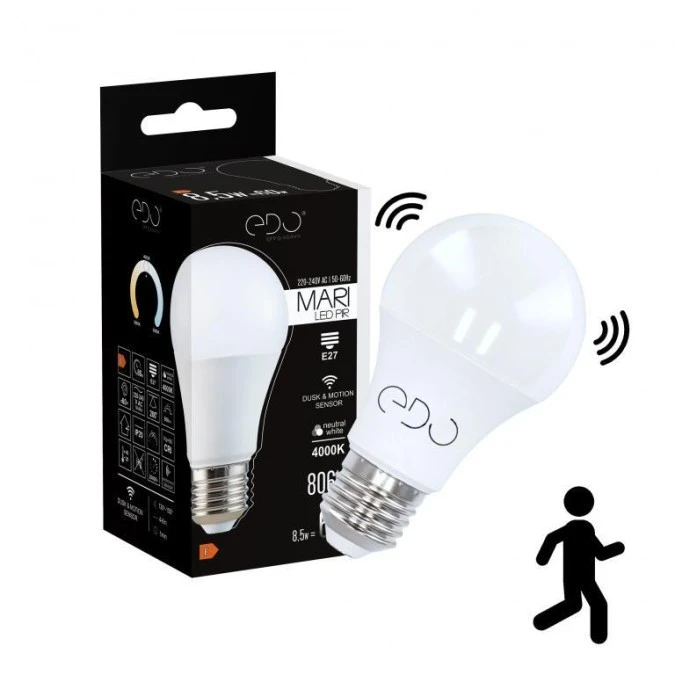 2. Żarówka z czujnikiem ruchu i zmierzchu MARI LED Sensor E27 8,5W 4000K neutralna NW 806lm EDO777392 EDO Solutions 12.19