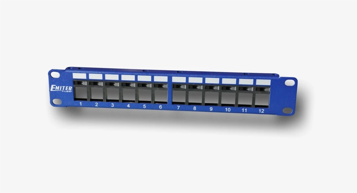 Panel 10” 12 portowy pusty dla RJ45 i RJ12 do gniazd beznarzędziowych DCN/3012KX12BL