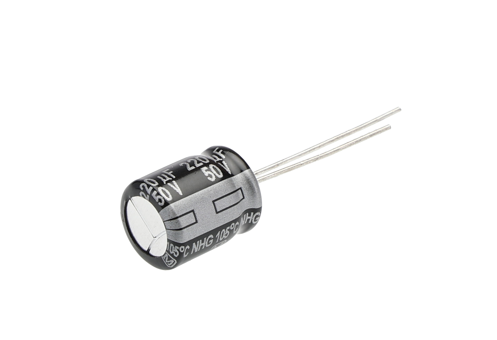 4. Kondensator 220μF 50V dc Radialny, Otwór przelotowy Panasonic roztaw: 5mm 10 (Dia.) x 12.5mm 1.22 x200
