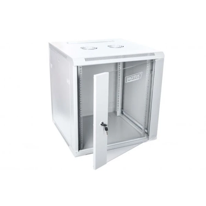 12. Szafa sieciowa wisząca 19 18U rack 600x600, drzwi szyba, szary, niedzielona, niezłożona, 60kg DN-WU19 18U/600 619.12