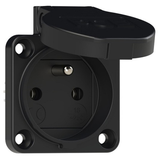 Gniazdo prądowe z klapką [2P+Z] 16A 230V tablicowe IP54 S-Nova PCE do obudowy czarne