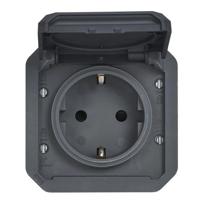 15. NOWE PLEXO 55 Gniazdo Schuko 2P+Z zaciski śrubowe mechanizm 16A - 250V AC antracyt 069839L 26.08