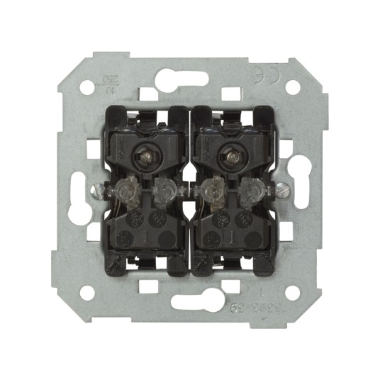 10. Simon 55 Łącznik schodowy podwójny z podświetl. – osobne podśw. dla klawiszy (moduł), szybkozłącza Aluminium mat TW6/2L2.01/143 90.68