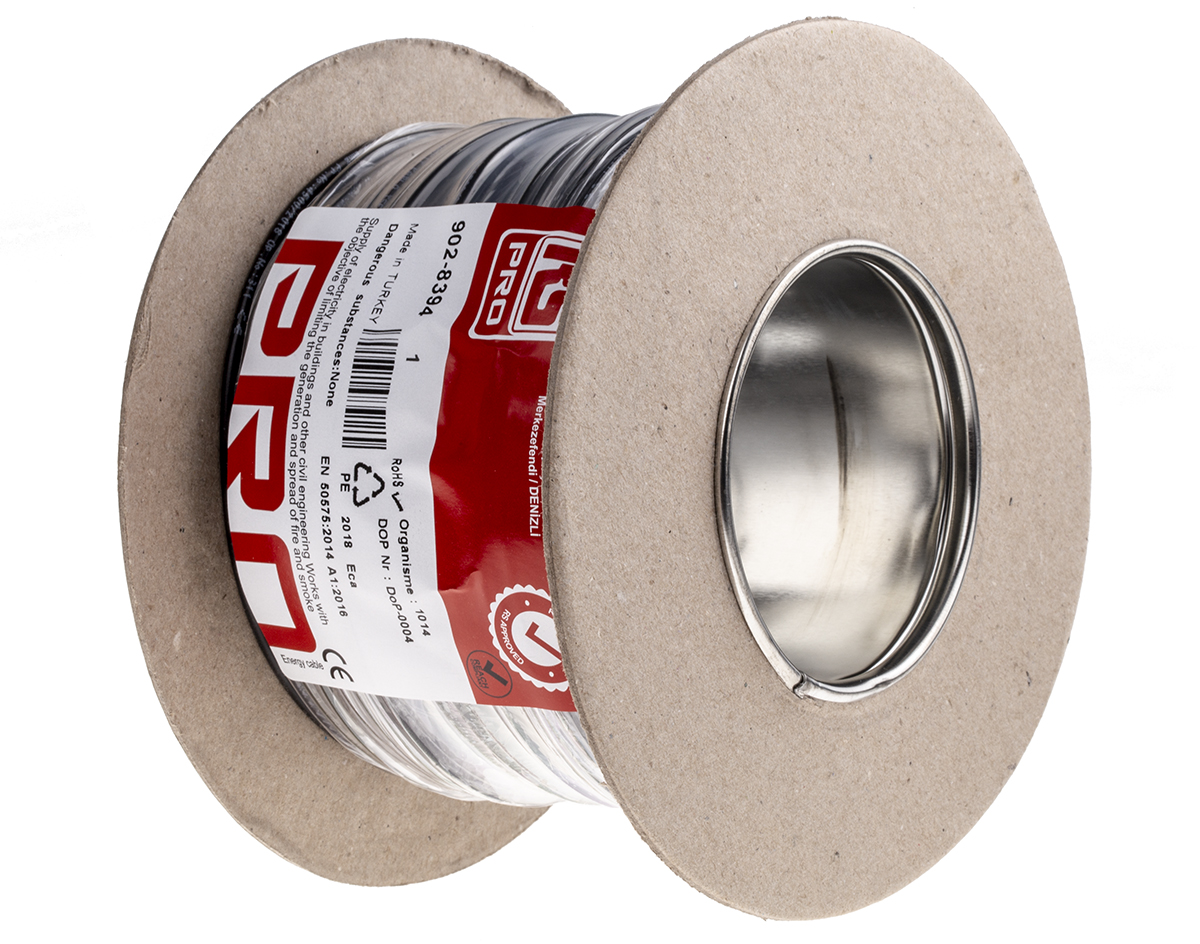 8. Przewód montażowy 1,5mm² Czarny RS PRO PVC 16 AWG 750 V dł. 100m 7/0.53 mm +70°C Euroclass Eca 338.86