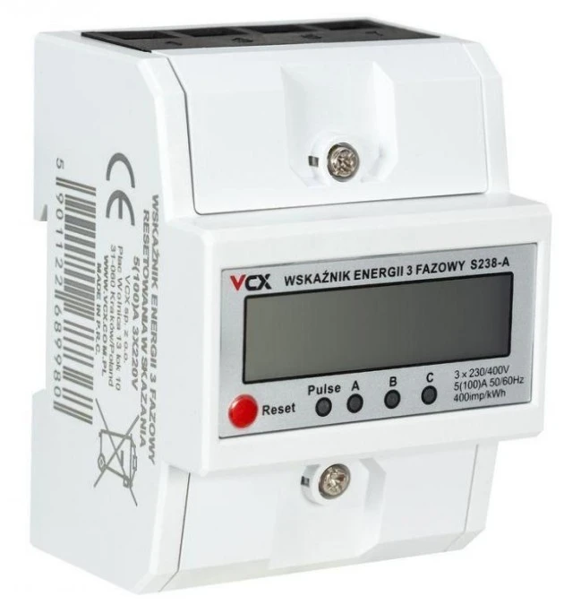 Licznik Prądu Energii Elektrycznej Trójfazowy 3F 230V 100A VCX