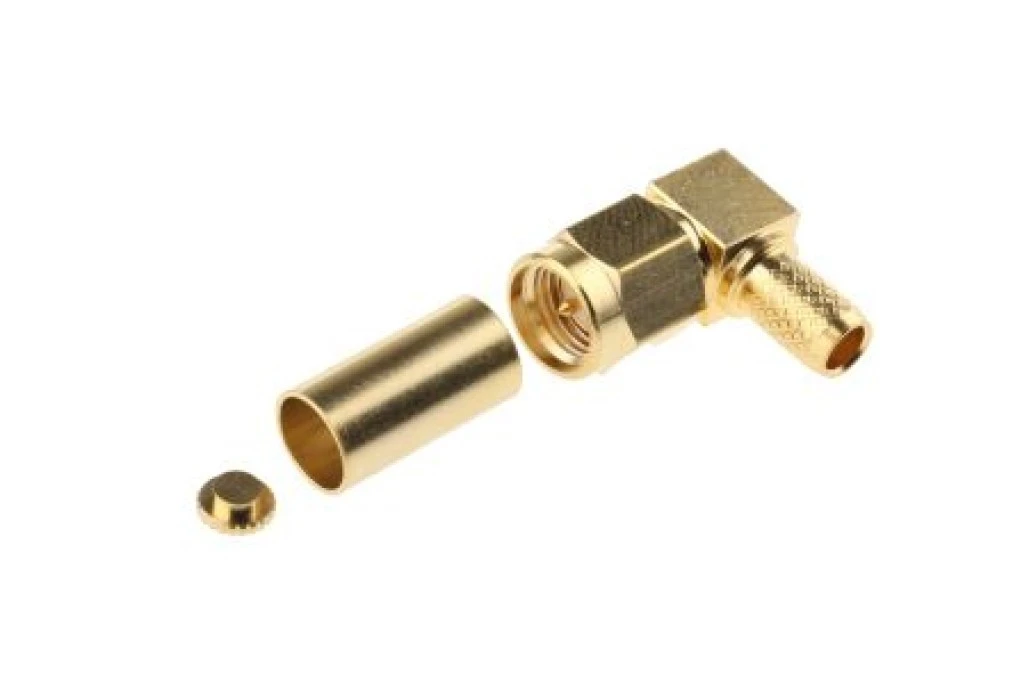 SMA plug 50 Ω, RG-142, RG-223, RG-400, RG-55, crimp connection, angled, 1052072-1