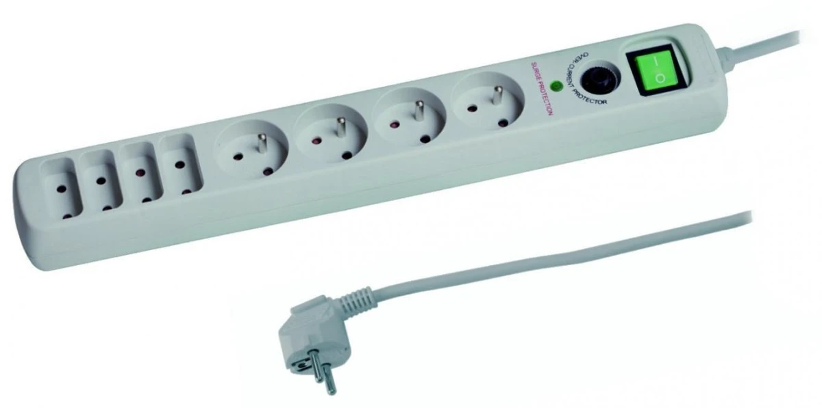2. Przedłużacz 8-gniazdowy, 1,5m z filtrem przepięciowym, z wyłącznikiem, 3x1,0mm OWY 25026 48.77