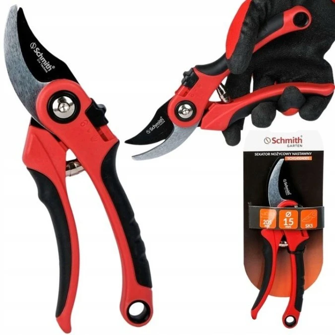 Sekator ogrodowy nożycowy nastawny ręczny 205mm Schmith