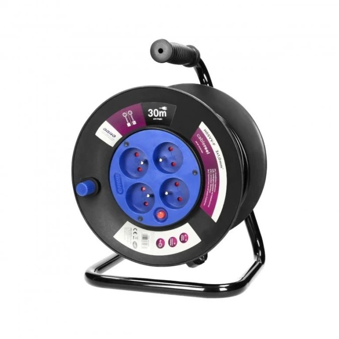15. Przedłużacz bębnowy, 4 gniazda 2P+Z, kabel PVC H05VV-F 3x1,0mm2, długość 30m, termik, przesłony torów prądowych. OR-AE-13152/30M 378.31