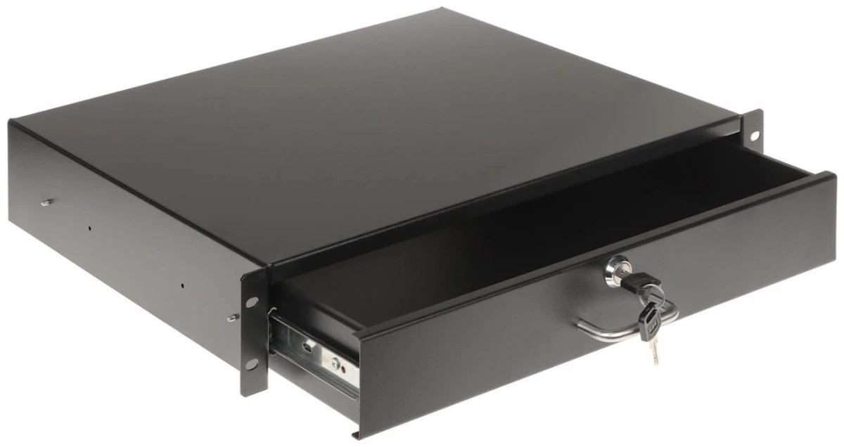 10. Szuflada z zamkiem do szafy RACK 19 2U 270mm czarna na narzędzia, sprzęt i dokumenty 132.67
