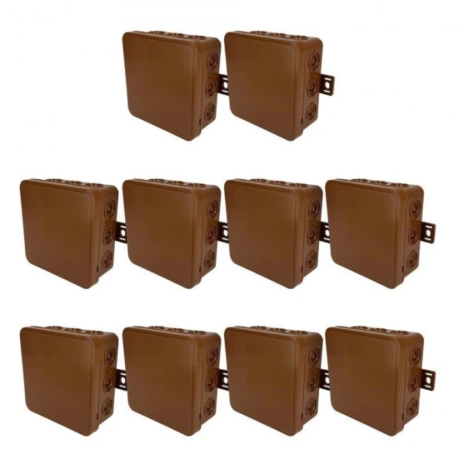 11. Puszka hermetyczna natynkowa elastyczna 100x100x41mm 12-wlotowa, zamknięcie na klik IP54 brązowa EDO 10szt 63.32