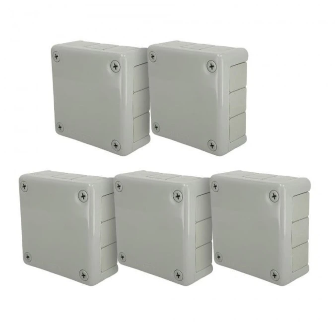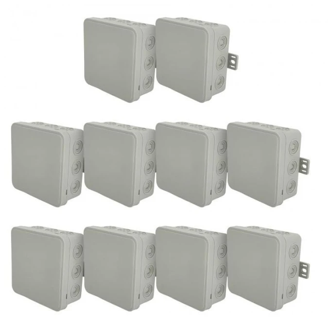 1. Puszka hermetyczna natynkowa elastyczna 100x100x41mm 12-wlotowa, zamknięcie na klik IP54 szara EDO 10szt 57.02