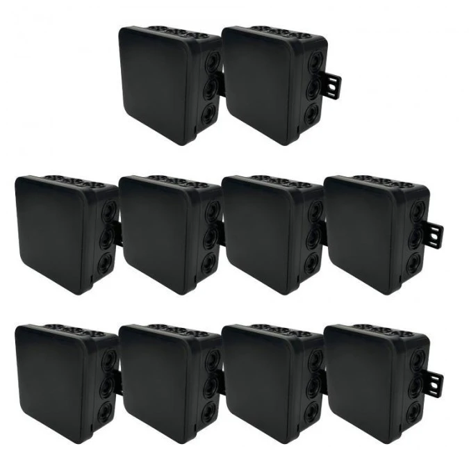 10. Puszka hermetyczna natynkowa elastyczna 100x100x41mm 12-wlotowa, zamknięcie na klik IP54 czarna EDO 10szt 63.32
