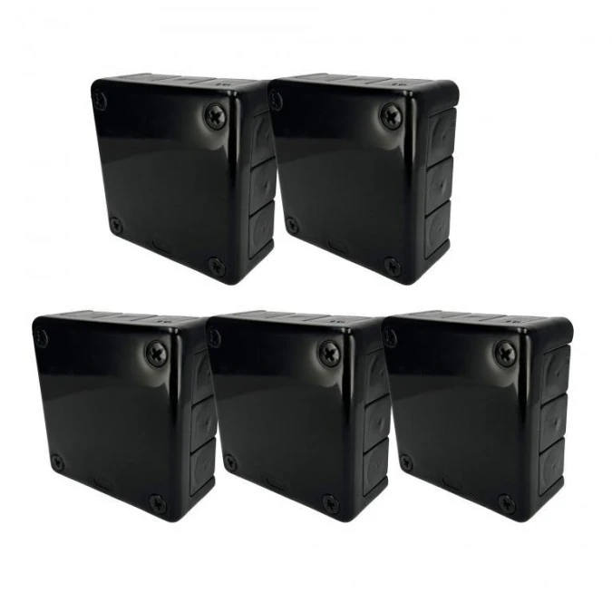 Puszka hermetyczna natynkowa 118x118x46mm 12-wlotowa, z dławikami gumowymi, IP55 zamknięcie na wkręty, czarna EDO 5szt