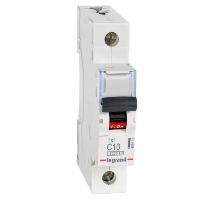 15. Wyłącznik nadprądowy S bezpiecznik 1-fazowy C10 (C 10A) 1-biegunowy 1P (230/400V AC) 1-modułowy TX3 Legrand 25.06