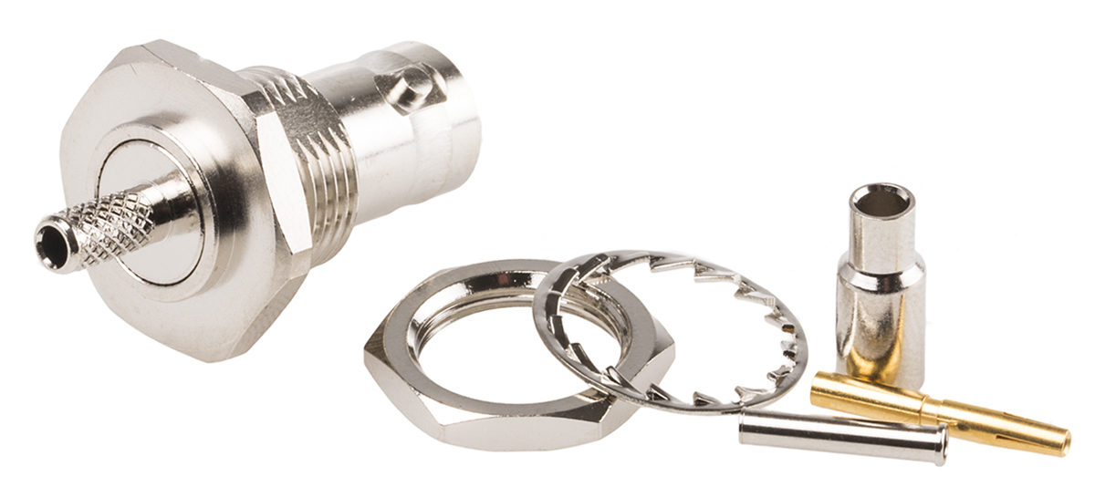 Złącze koncentryczne Montaż na panelu Żeński 50Ω typ złącza Złącze BNC 0 to 4GHz Połączenie zagniatane typ kabla RG174