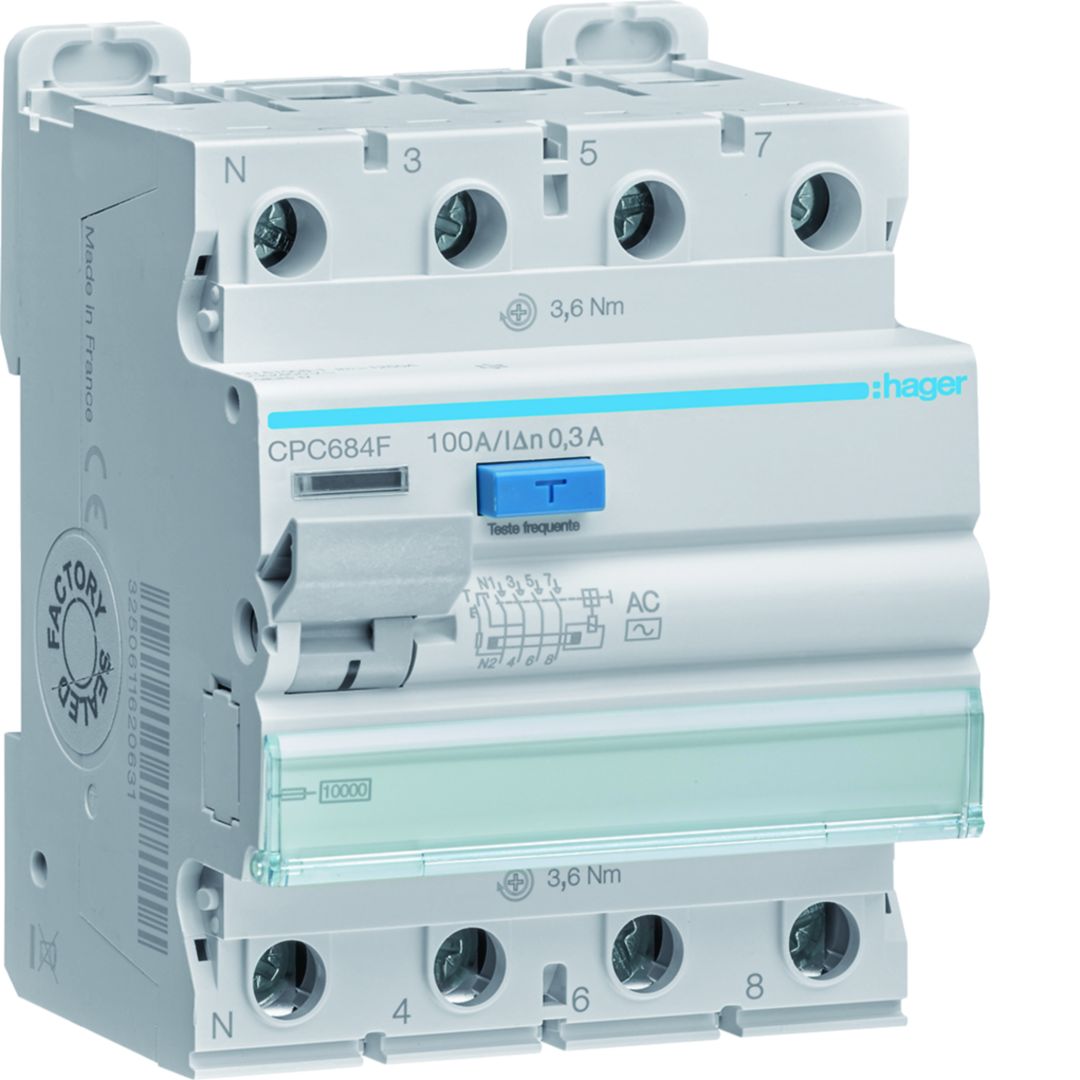 RCCB, Typ AC, 3P+N-biegunowy, 100A, 300mA, Hager, CPC 230 → 400V ac