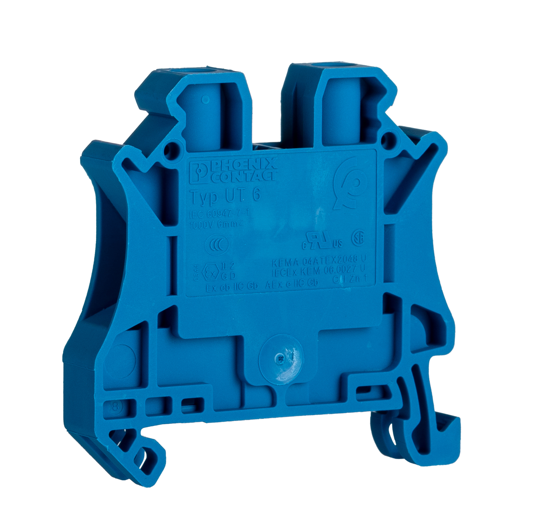 8. Blok zacisków przelotowych Phoenix Contact poziomy: Pojedynczy 24 → 8AWGŚruba UT 6 BU 41A 1 kV 95.37