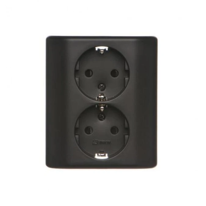Simon 54 Gniazdo podwójne Schuko podtynkowe z przesłonami torów prąd. wer. skand. 16A 250V zaciski śrubowe czarny mat EGSZ2PZ/49