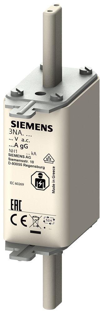 Bezpiecznik z wyśrodkowanym wyprowadzeniem 63A 500V ac NH1 F gG Siemens