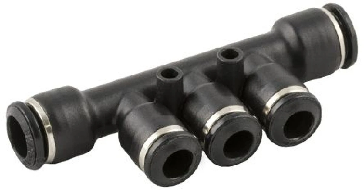 Mocowanie rozdzielacza rura – rura, 20 barów, wloty: 1, wyloty: 3, wlot: Wciskane 10 mm, wylot: Wciskane 6 mm