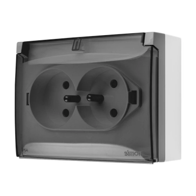 9. Simon Aquaclick Gniazdo IP44, podwójne kompaktowe z uziem., klapka transparentna z przesł. torów prąd. szary ACGZ2Z/16A 30.60