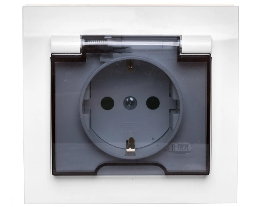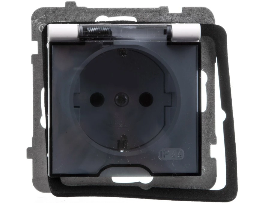 KARO Gniazdo bryzgoszczelne z/u IP44 z przesłonami klapka przezroczysta białe GPH-1SZP/m/00/d