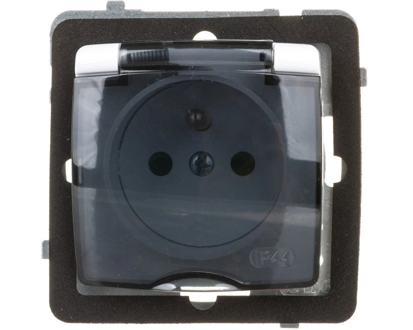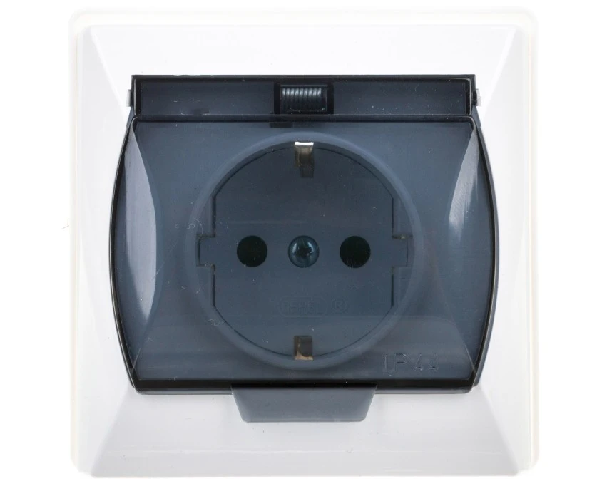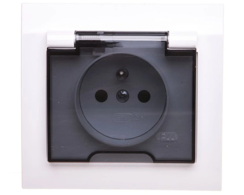 5. KIER Gniazdo bryzgoszczelne z/u IP44 z przesłonami klapka przezroczysta białe GPH-1WZP/00/d 24.11