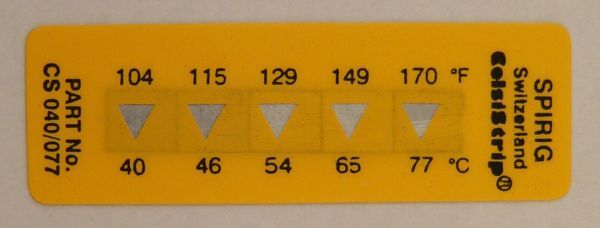 13. Celsistrip-znacznik temperatury, samoprzylepna etykieta termoczułaCS-040/077, 40°C - 77°C, 5 temperatur, opakowanie 10 etykiet 103.14