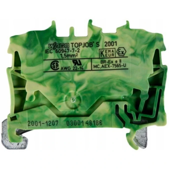 13. WAGO TOPJOBS 2001-1207 Złączka szynowa 2-przewodowa 1,5mm2 na szynę TH35 żółto-zielona 15.77