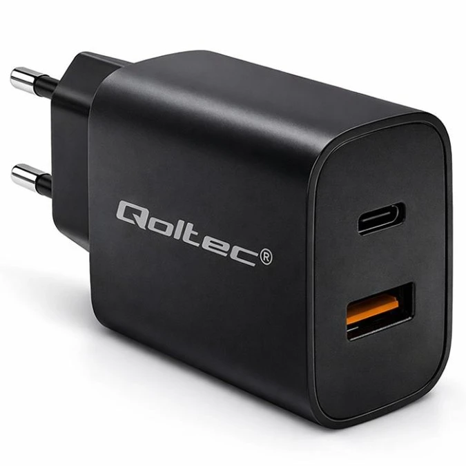 Qoltec Ładowarka GaN POWER PRO 1xUSB-C 1xUSB 30W 5-20V 1.5-3A Czarna