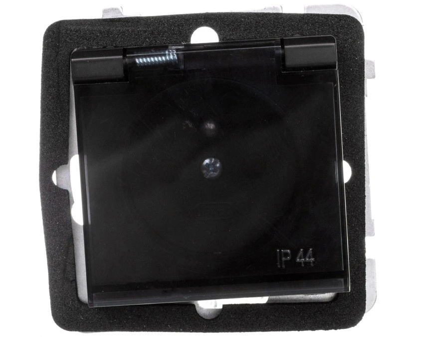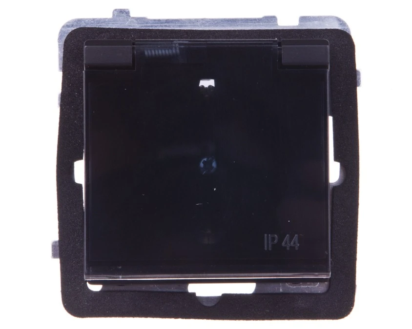3. SONATA Gniazdo bryzgoszczelne z/u IP44 z przesłonami klapka przezroczysta czarny metalik GPH-1RZP/m/33/d 37.36