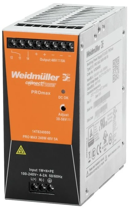 Weidmüller 1478240000 PRO MAX Rail PSU 240W 48V 5A DIN-mounted solution