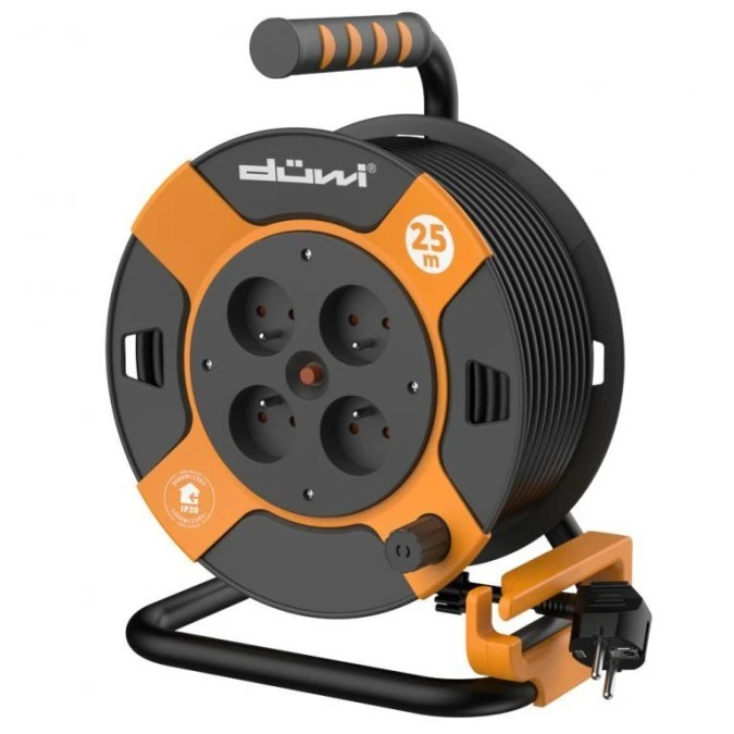 Przedłużacz bębnowy 4-gniazdowy H05VV-F 3G1.0, 25m pomarańczowo-czarny / 24625