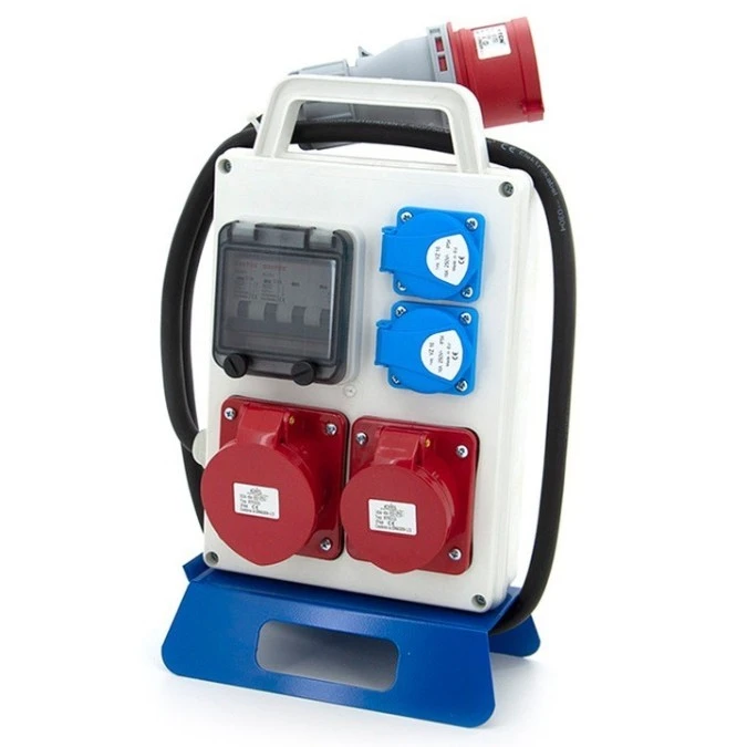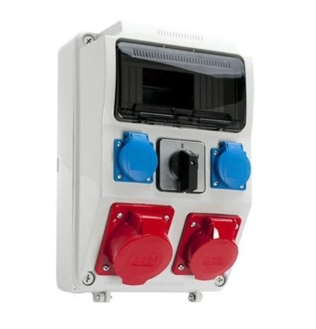 Rozdzielnica z wyłącznikiem krzywkowym gniazdem 32A 5P gniazdem 16A 5P oraz dwoma gniazdami 230V