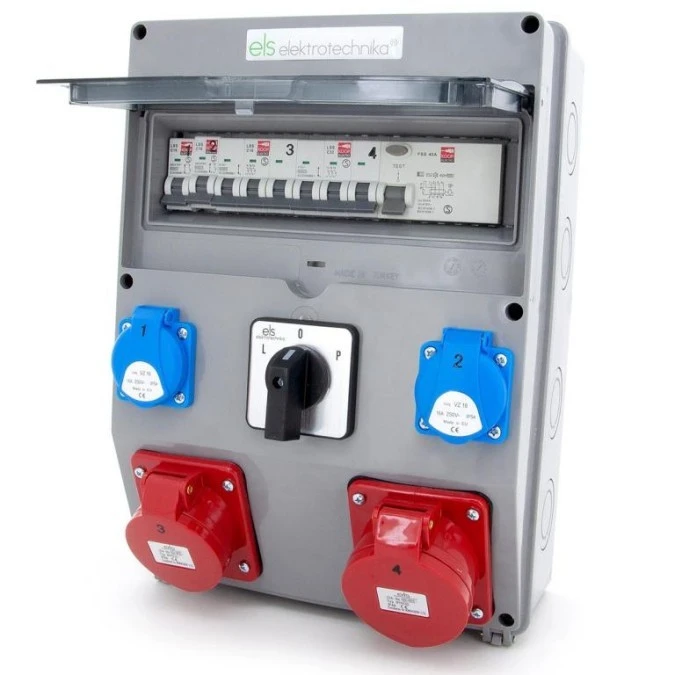 15. Rozdzielnia budowlana 32A/5 + 16A/5 + 2*GS 230V + zabezpieczenia + różnicówka + wyłącznik L-0-P, 12NO22C11C11CFLP 514.35