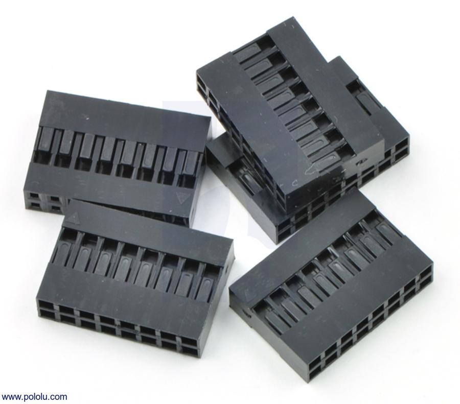 Pololu 0.1" (2.54mm) Crimp Connector Housing: 1x10-Pin 5-Pack